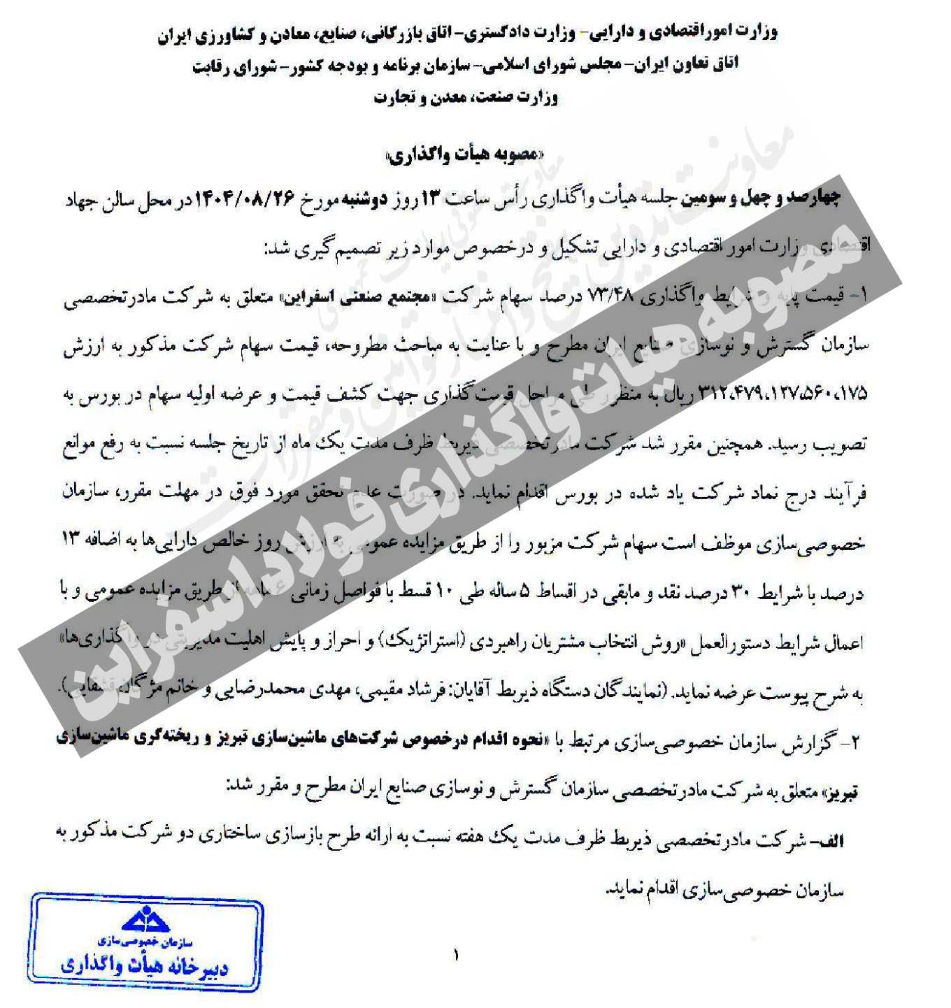 اعلام قیمت پایه واگذاری سهام فولاد اسفراین