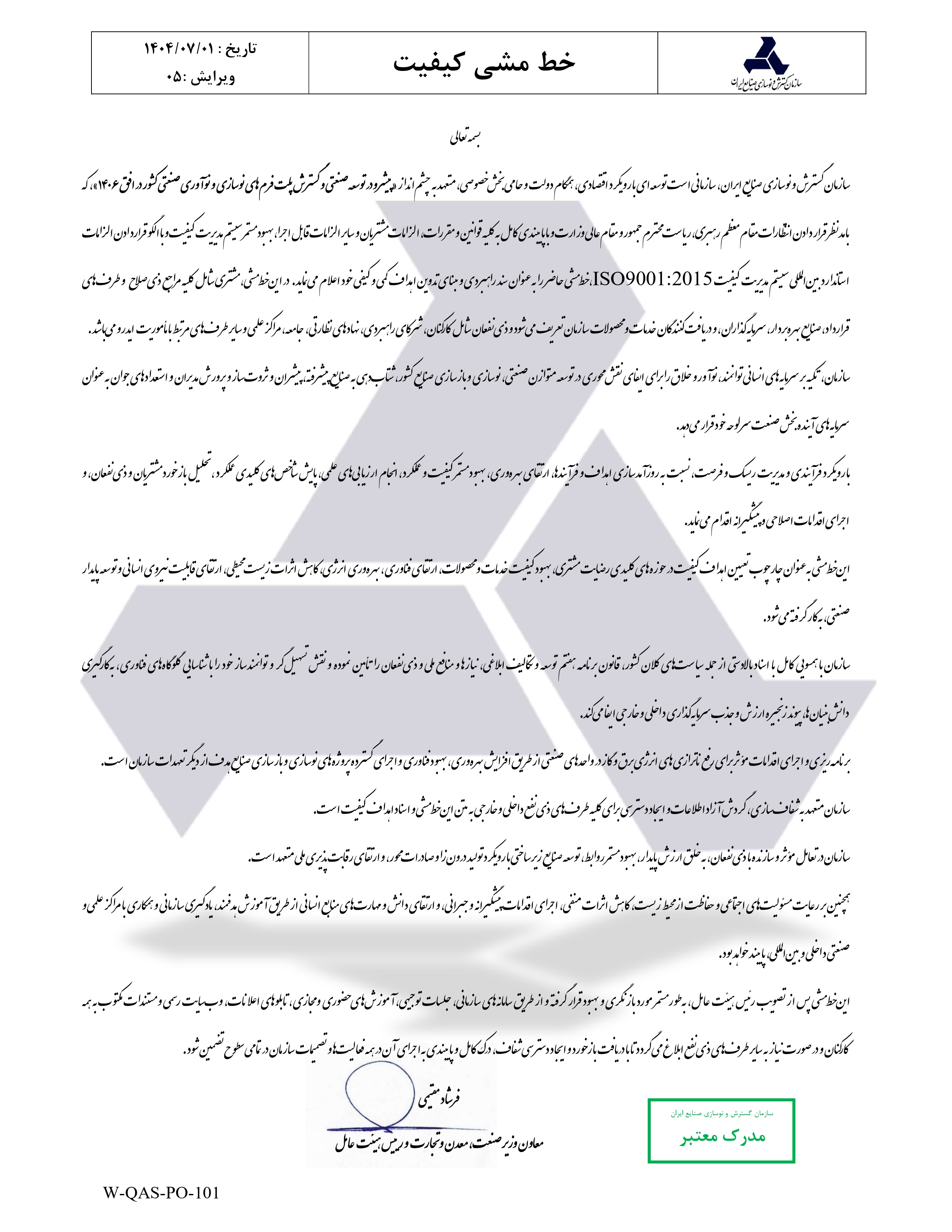 خط مشی کیفیت